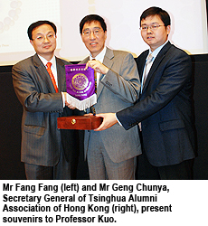 Mr Fang Fang, Chairman of Tsinghua Alumni Association of Hong Kong, delivered the welcome remarks, praising Professor Kuo, an alumnus of National Tsing Hua University who has taught extensively in the US, for his contribution to research in tertiary teaching, adopting a quantitative and qualitative analysis. “The two Tsinghua universities in mainland China and Taiwan plan to publish Professor Kuo’s study, Clarifying Some Myths of Teaching and Research. Professor Kuo will donate the royalties for use in scholarships.”
