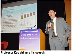 Professor Kuo laced his speech with many interesting examples to illustrate his point. Talking about productivity, performance, and effectiveness, he cited Yao Ming, China’s top basketball player, as an example. “The super-tall basketball player can easily score by shooting, and that is his productivity. He makes many successful shots in a match, and that is his performance. Then, leading his team to the NBA championship would be a measure of his performance effectiveness,” he said.