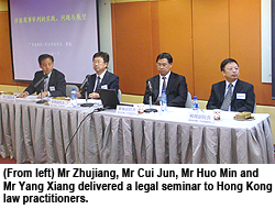 Representatives of the Chinese senior judges themselves hosted a seminar, “Adjudication of Hong Kong-related Commercial Disputes in the Mainland: Practice, Problems and Perspective,” on 17 June. The seminar was jointly organised by CityU’s School of Law and Hong Kong Academy of Law. It provided law professionals with a comprehensive look at the concepts and principles regarding the adjudication of Hong Kong-related commercial disputes on the mainland. Citing the example of Guangdong Province, the judges summarised the related civil cases, covered the impact of the global economic crisis on the adjudication of related disputes and discussed the legal development of Hong Kong and mainland China. The seminar has provided a platform in Hong Kong for the Chinese judges and local law professionals to exchange views on handling cross-border cases.