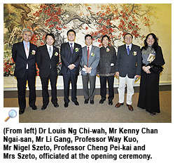 The opening ceremony was held on 16 November and officiated by Mr Nigel Szeto, member of the Chinese Artists Association and founding Chairman of Cang Cheng Art Studio; Mr Li Gang, Deputy Director of the Liaison Office of the Central People’s Government in the Hong Kong Special Administrative Region; Dr Louis Ng Chi-wah, Assistant Director (Heritage & Museums) of Leisure and Cultural Services Department; Mr Kenny Chan Ngai-san, District Governor of Lions Clubs International District 303, Hong Kong & Macau, China; Professor Way Kuo, CityU President and Professor Cheng Pei-kai, Director of CCIV.