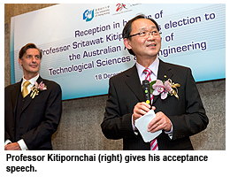 Chair Professor Sritawat Kitipornchai, Head of the Department of Building and Construction at City University of Hong Kong (CityU), was given a reception on 18 December in honour of his election as Fellow of the Australian Academy of Technological Sciences and Engineering, an independent body of 800 eminent Australian technologists. The accolade was presented in recognition of his outstanding research and world-renowned publications in structural engineering and solid mechanics.