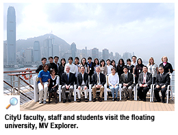 More than 20 City University of Hong Kong’s (CityU) faculty, staff and students took a tour on the visiting floating university, MV Explorer, to gain a first-hand experience of on-board education, on 23 February.