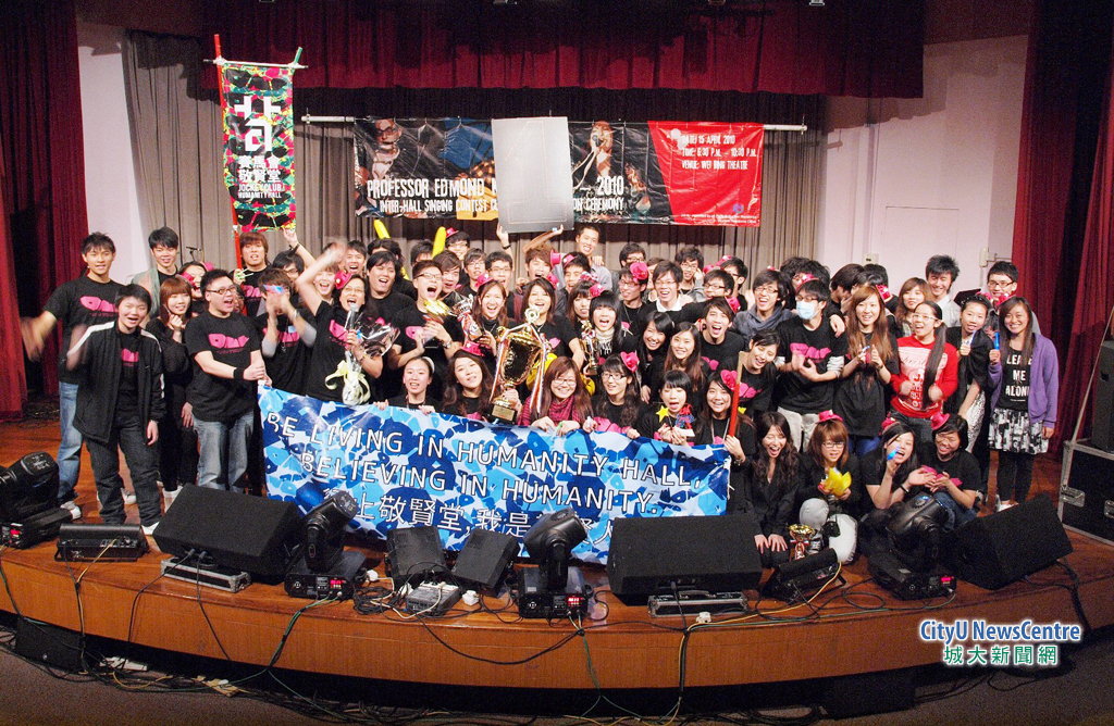 When the results of the singing contest were announced, the cheering teams could not stop cheering. The HSBC Prosperity Hall and Jockey Club Academy Hall received the same scores from a panel of hall alumni. Their hall spirit reached its highest point when both halls were declared the Best Cheering Halls. The champion of the singing contest was Jockey Club Academy Hall. Jockey Club Humanity Hall was awarded the 1st runner-up prize, whilst Chan Sui Kau Hall and Lee Shau Kee Hall became the joint 2nd runners-up.