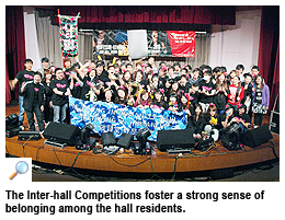 In the midst of the Inter-hall Singing Contest, the cheering teams from the nine halls, wearing their respective hall T-shirts, jackets or specially designed accessories, held banners, waved illuminated neon sticks and chanted slogans. Dimple and Allan, the two great masters of ceremony, introduced each solo singer or group representing their halls, who caught the attention of the lively audience with their impressive performances.