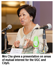 This was Mrs Cha’s third visit to CityU since she took up her position in 2007. That year she offered staff and students a “Getting to Know UGC” session. In 2009 she met with members of the University’s Senate/Academic Board to listen to views of the UGC and thoughts on the Higher Education Review 2010.