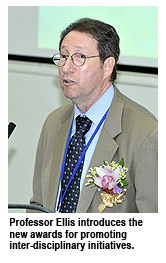 Attending the Town Hall meeting were Dr Andy Chun Hon-wai, Chief Information Officer; Professor Gary Feng Gang, Associate Provost; Dr Ron Kwok Chi-wai, Associate Director, Office of the Education Development and General Education and Chairman, General Education Course Evaluation Panel; Professor David Randall, Director, Office of Education Development and General Education; Professor Lilian Vrijmoed, Department of Biology and Chemistry and Chairman, Selection Panel for the Teaching Excellence Awards 2010-11; and Professor Wang Guiguo, Dean, School of Law. They joined Professor Ellis to introduce the awards scheme in detail and explain the support that CityU would give its faculty and staff for the preparation of the Discovery-enriched Curriculum.