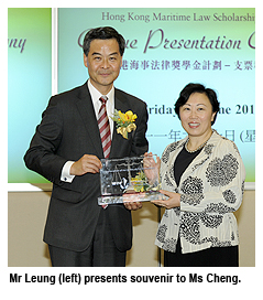 Mr Leung said: “CityU is committed to providing quality professional education and research and is taking the lead in the development of the maritime services sector in Hong Kong, including the maritime legal profession. We are most grateful to the MIC for its support and to the HKSAR Government for the funding. The launch of the Hong Kong Maritime Law Scholarship has set a milestone in the development of Hong Kong. I am confident that the steps we take today will provide much broader career opportunities for the younger generation and better prospects for our economy.”