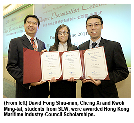 In the ceremony, three students were awarded Hong Kong Maritime Industry Council Scholarships, which is the predecessor of Hong Kong Maritime Law Scholarship Scheme. Under the new scheme, recipients will continue to be selected on a meritorious basis and a maximum of one third of the total enrolled students in Maritime and Transportation Law will be awarded with the scholarship.