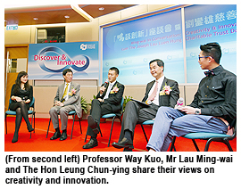 At the Ming-wai in Conversation session with teachers, students and alumni before the ceremony, Mr Lau Ming-wai, representing the Trust and Vice-Chairman of Chinese Estates Holdings Limited, The Hon Leung Chun-ying, Council Chairman of CityU, and Professor Way Kuo, President of CityU, discussed their views on creativity and innovation as well as their insights on the University’s achievements in innovation.“CityU has impressed me a great deal, as it has achieved so much in only 26 years, especially in the area of innovation, such as the establishment of the School of Creative Media and the proposed school of veterinary medicine,” Mr Lau said. “In addition to regular subjects, CityU is also developing innovative courses and programmes. CityU is worthy of our enthusiastic support.”