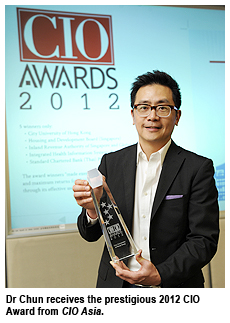 This project was listed in the CIO 100 Index and was awarded the prestigious 2012 CIO Award which the leading regional enterprise IT magazine CIO Asia hands to the top five most outstanding IT projects in this region. CityU is the only university in Greater China, and one of the very few Universities in Asia, to have received the award in the 12 years since it was established.