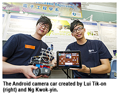 “The College strives to nurture students’ talents and create applicable knowledge. This exhibition demonstrates the wide spectrum of knowledge that the students have acquired and their ability to apply their knowledge to solve problems in our daily life,” said Professor Lu Jian, Dean of CSE.Among the items on display is an Android camera car designed by three students from the Department of Electronic Engineering: Johnson Lui Tik-on, Jason Ng Kwok-yin and Chris Lam Kong-fai. The camera car can be controlled remotely by Android devices to capture images or videos around the home, and send them to a user’s handset.