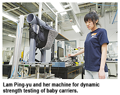 Meanwhile Helen Lam Ping-yu from the Department of Systems Engineering and Engineering Management has fabricated a machine based on European standards for the dynamic strength testing of baby slings.