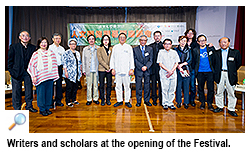 Distinguished novelists, essayists, poets and literary critics were invited from mainland China, Hong Kong, Taiwan and other places to participate in the festival. They were Mr Li Rui, Mr Perry Lam, Ms Shih Shu-ching, Professor Huang Ziping, Mr Xu Zhiyuan, Ms Zhang Yihe, Mr Yip Fai, Professor Jiau Tung, Mr Liu Wai-tong, Mr Pun Kwok-ling, Professor Cheng Chou-yu, and Ms Han Liang-lu. Those who attended the opening shared their views and ideas about humanity and environmental conservation in a talk that followed.