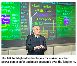 Also under discussion was the molten salt-breeder reactor that Professor Shu argued had the potential to replace the light water reactors with a “walk-away safe, less expensive, more proliferation-resistant form of nuclear power”.