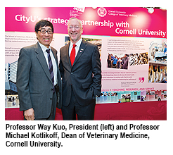 In his address, Professor Kotlikoff said the ambition for SVM is to train the next generation of clinicians and scientists who can help address the challenges of animal health and welfare in Asia. “Hong Kong is a perfect place to achieve this goal, a bridge between East and West. City University, a dynamic and progressive University, is the ideal partner to build Life Sciences around a world-class veterinary college,” he added.