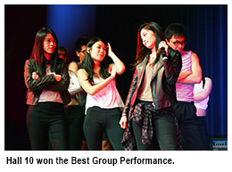 A total of nine awards for the singing contest were given out: to students from Jockey Club Humanity Hall, Alumni Civility Hall, Jockey Club Academy Hall, Lee Shau Kee Hall, Hall 10 and Hall 11.The most exciting moment came when Jockey Club Humanity Hall was announced as the overall champion of the Professor Edmond Ko Cup.