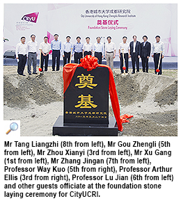 Officiating guests included Professor Way Kuo, CityU President; Professor Arthur Ellis, CityU Provost; Professor Lu Jian, Vice-President (Research and Technology) of CityU; Mr Tang Liangzhi, Deputy Secretary of the CPC Chengdu Municipal Committee and Mayor of Chengdu Municipal Government; Mr Gou Zhengli, Deputy Mayor of Chengdu Municipal Government; Mr Zhou Xianyi, Party Secretary of Shuangliu County; Mr Xu Gang, Magistrate of Shuangliu County; Mr Zhang Jingan, Chairman of China High-tech Industrial Zone Association (Former Secretary-general of Ministry of Science and Technology and Director of Science and Technology Daily); and other members of the CityU senior management.