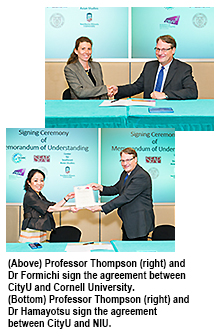 Framework agreements signed with Cornell University and Northern Illinois University (NIU) on 12 June establish long-term collaboration for joint research projects and academic exchange activities between City University of Hong Kong’s (CityU) Southeast Asia Research Centre (SEARC) and two of the most important centres for Southeast Asian Studies in the US.