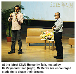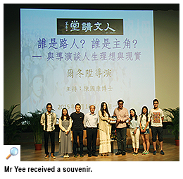 Young people today might experience similar personal conflicts, Mr Yee told the 500 CityU teachers and students attending the event.