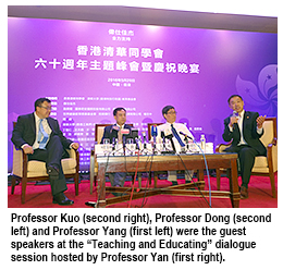 The “Teaching and Educating” dialogue session was hosted by Professor Yan Houmin, CityU’s Dean of College of Business, with guest speakers Professor Yang Bin, Vice-President of Tsinghua University in Beijing, and Professor Dong Chen, Executive Dean of Tsinghua University’s School of Medicine.