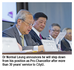 Although he will step down as Pro-Chancellor at the end of June, Dr Norman Leung Nai-pang said CityU would always be close to his heart.