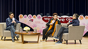 Mr Luk Ho-ming, Mr Alfred Cheung and Ms Maria Cordero exchange ideas during the Celebrity Sharing Session. |
