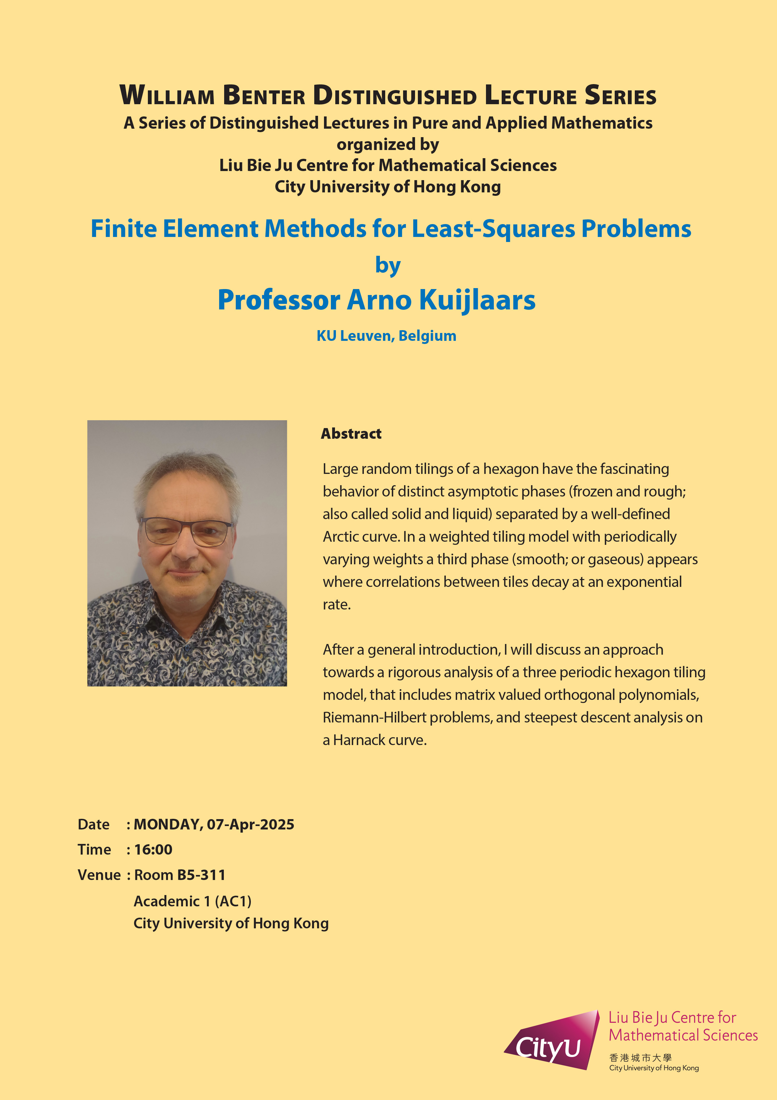 William Benter Distinguished Lecture Series :Prof. Arno KUIJLAARS