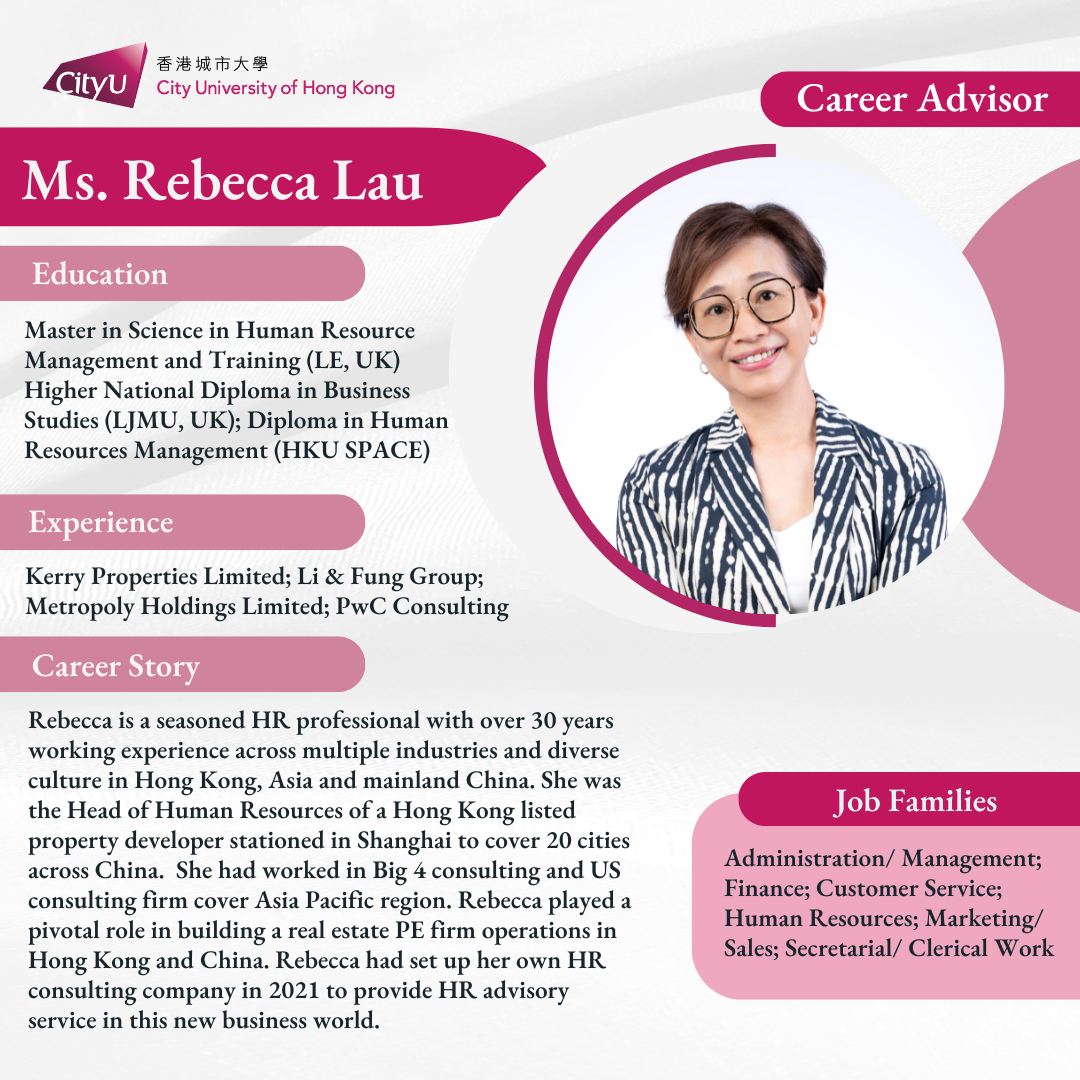 Current CityUHK associate and undergraduate students are welcome. 2024 graduates are also eligible for career consultation until 31 August 2025.