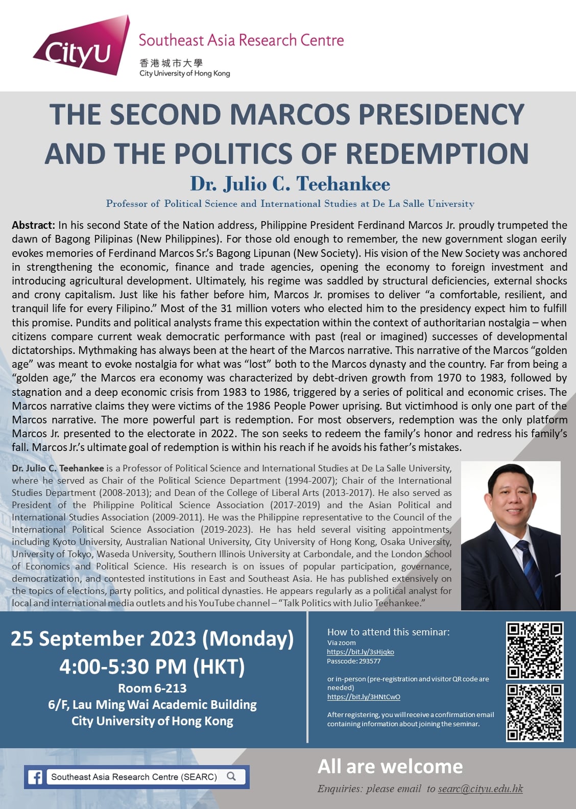 | SEAREG 2024 Summer Conference | Dr. Dean Dulay, Singapore Management University | Prof. Tong Chee-Kiong, City University of Hong Kong |