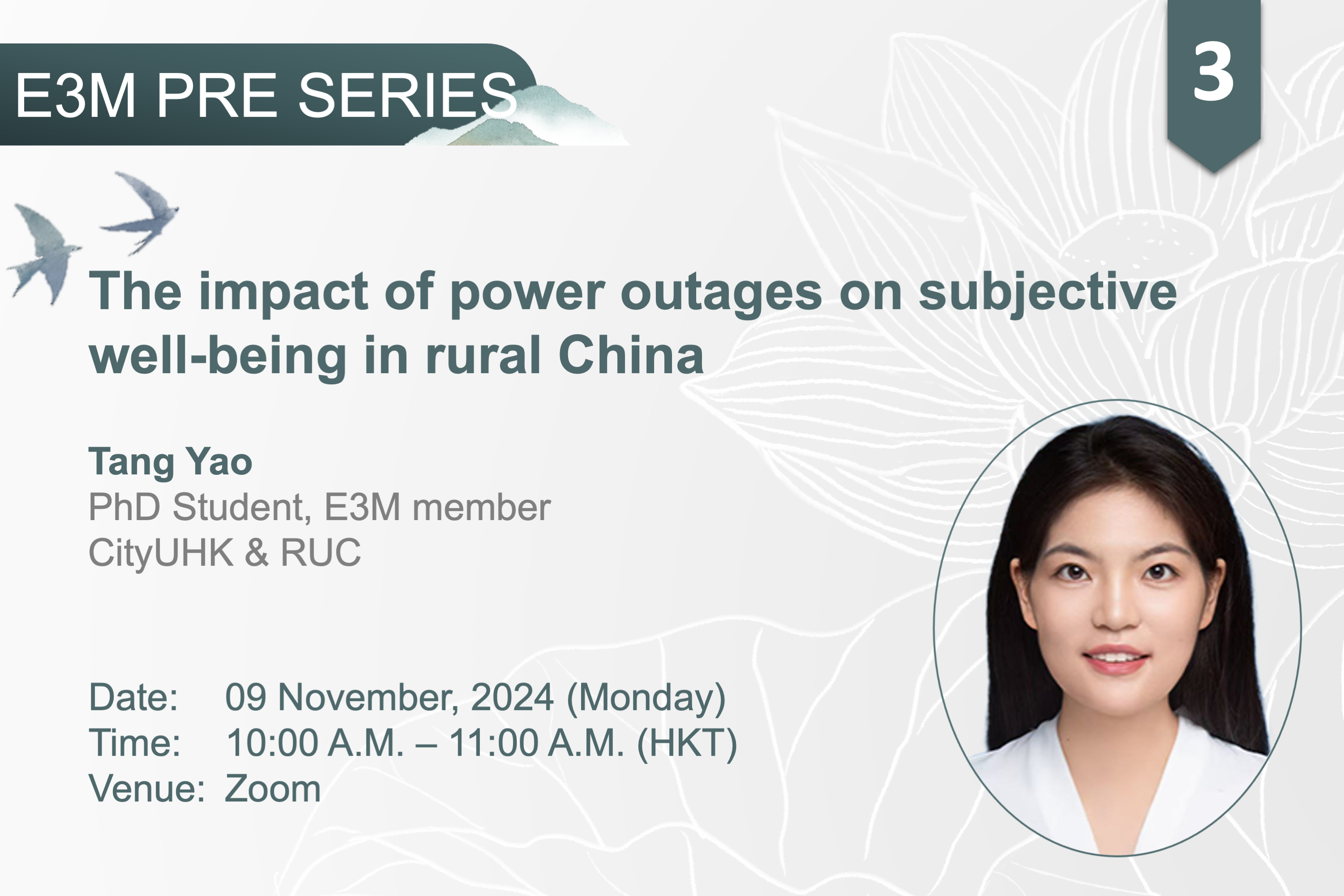 E3M Pre Series 3: The impact of power outages on subjective well-being in rural China