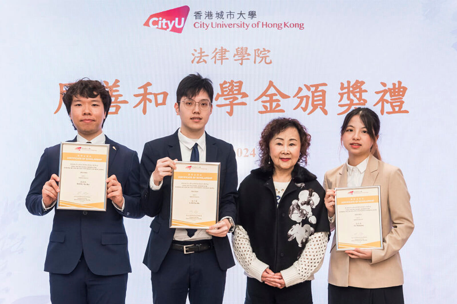 The first award ceremony for the Chau Sin Wo Scholarships for the School of Law of City University of Hong Kong (CityUHK) was held in March to commend outstanding undergraduate law students. Three students won the award this year.