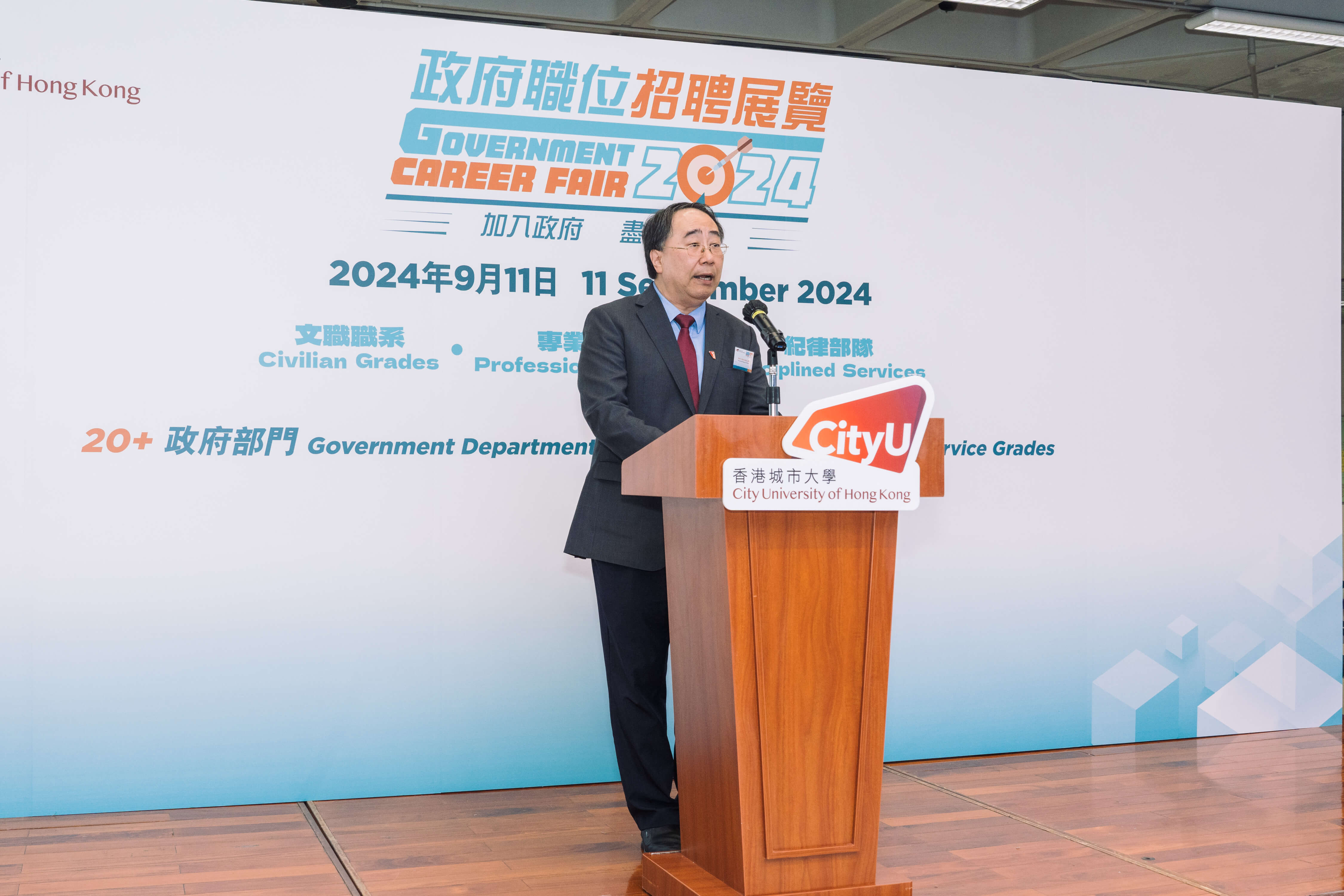The Government Career Fair 2024 took place on the CityUHK campus for the first time on 11 September 2024! Organised by the Career and Leadership Centre (CLC) of the Student Development Services (SDS) in collaboration with the Civil Service Bureau of the Government of the Hong Kong Special Administrative Region of the People’s Republic of China (HKSAR Government), the Fair was an exceptional platform for CityUHK students across academic levels and disciplines to explore diverse career opportunities within the public sector.