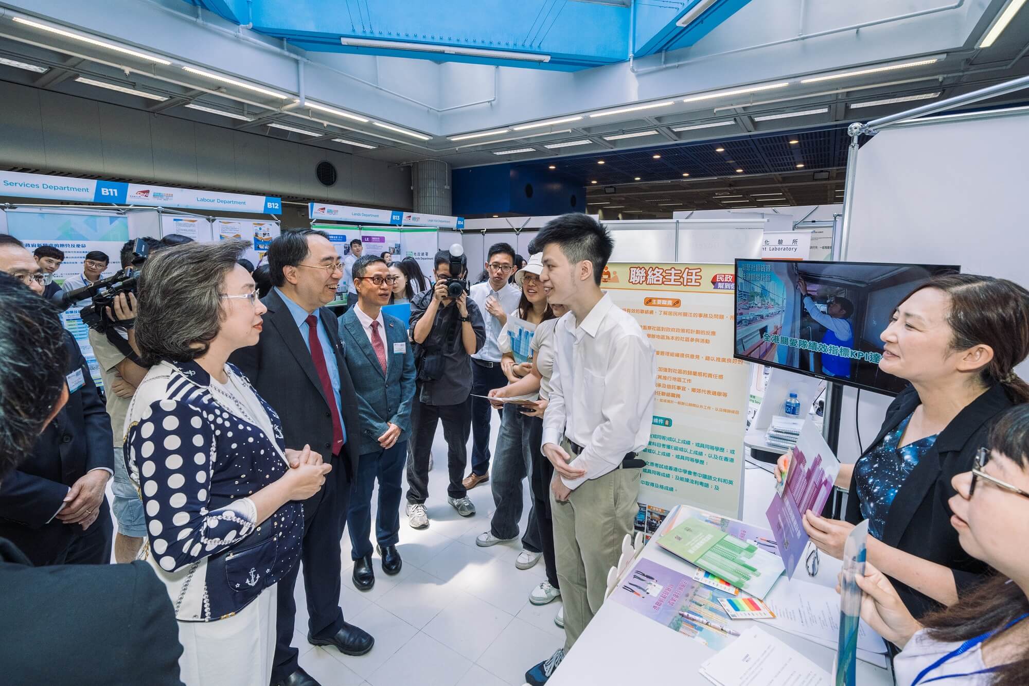 Accompanied by senior management of the University led by Professor LEE, Mrs YEUNG visited the recruitment booths and interacted with CityUHK students to learn about their career aspirations, and encouraged them to join the civil service and build a better future together.