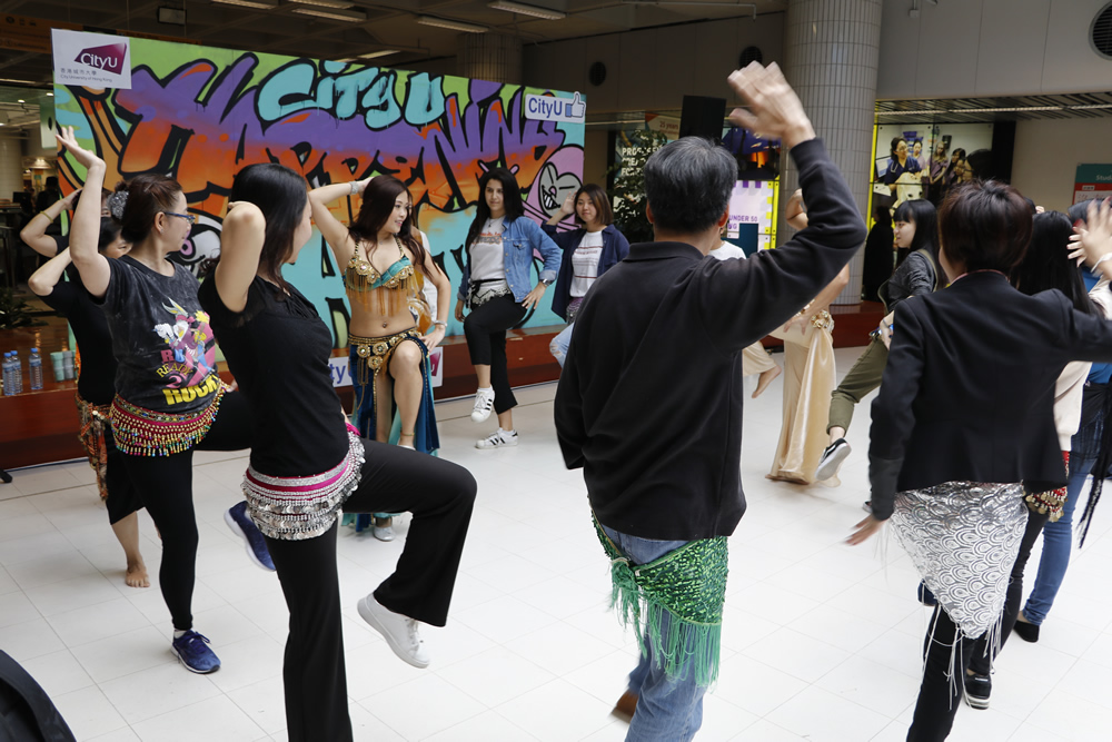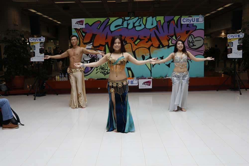 Let’s Play Arts Together! As the grand finale of this semester’s Happening Arts Programme, professional Turkish Belly Dance tutors Dorothy, Sally and Hugo were invited to the CityU to perform a series of Turkish belly dance. The audiences were all amazed by their beautiful figures with forceful movements. In the workshop session, student and staff participants experienced the joy of dancing through learning basic dance steps and movements from tutors. What a fun afternoon!
