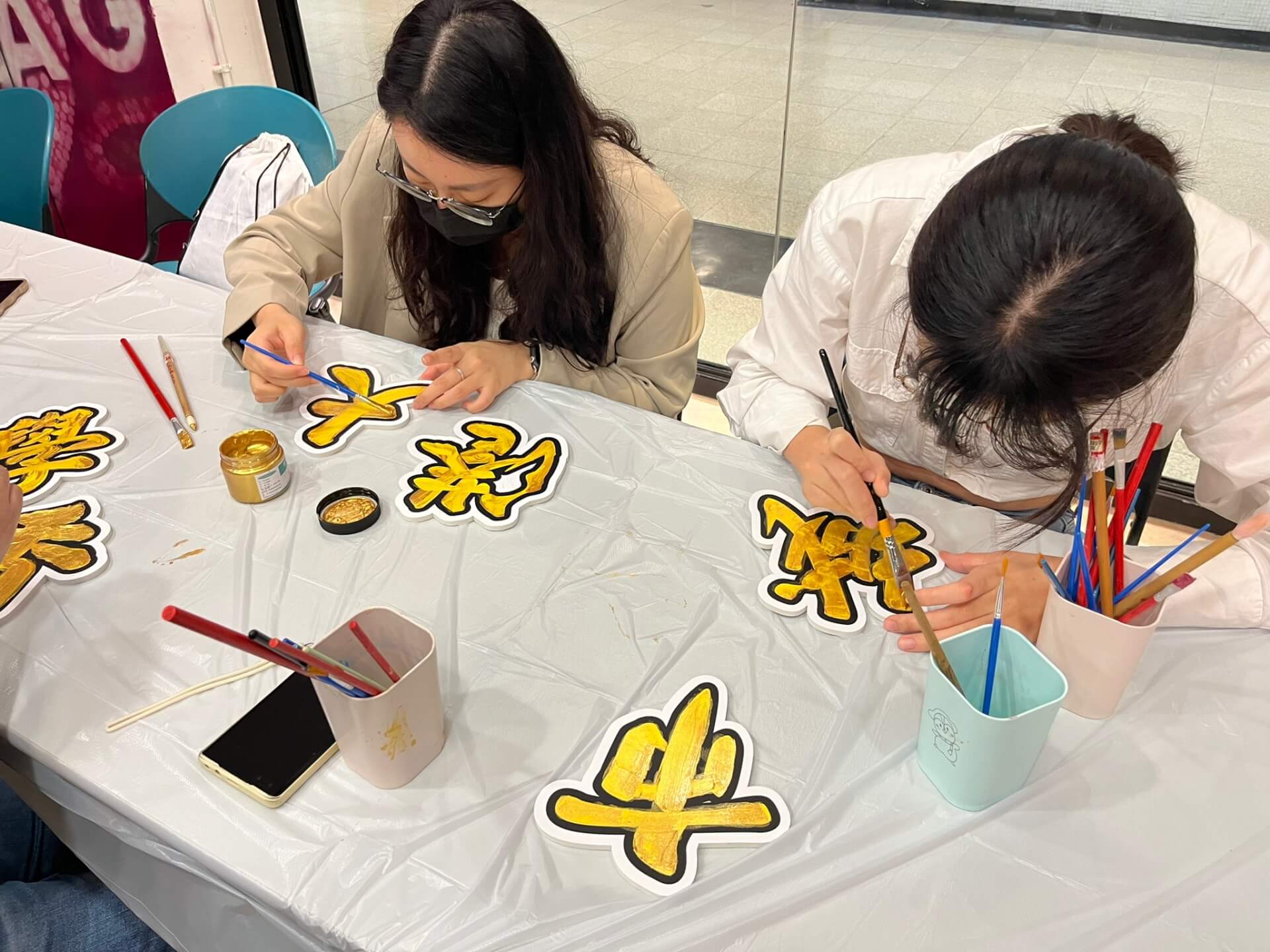 The finished plaque will be displayed at the Traditional Chinese Handicrafts exhibition at Student Hub, Yeung Kin Man Academic Building, from 17 April to 16 May 2023. Welcome to take a photo with the beautiful plaques and lion heads!