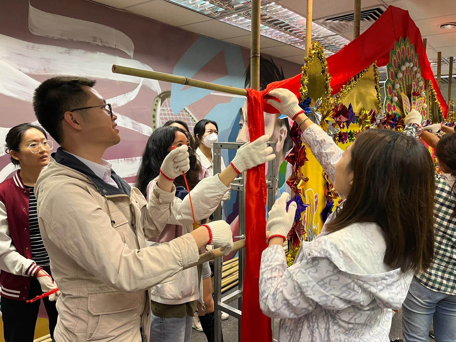 It was a two-night workshop for the participants to produce a large-scale CityU flower plaque together! They got a glimpse into the production process of traditional handicrafts, including bamboo scaffolding, painting, decorating, and installing the flower plaque. We were delighted to have Mr CHAN Sing, an experienced flower plaque artisan, and his team coaching our participants. The workshops were joyful, and everyone was thrilled to see the finished plaque.
