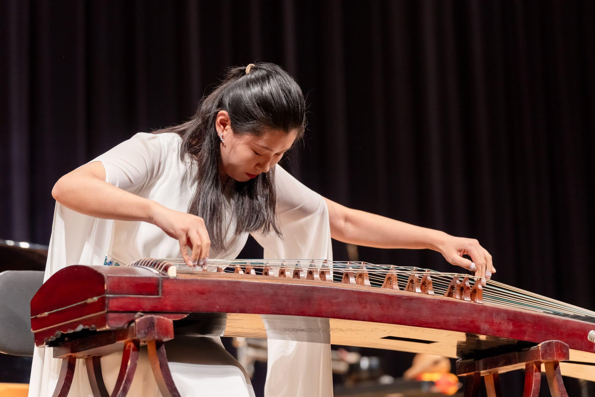 The concert began with the song "Celebration Overture", two groups then took turns playing a variety of Chinese instruments, including Erhu, Pipa, Guzheng, Dizi, Percussion, etc., to perform a series of Chinese music pieces featuring the Silk Road, including "The Flying Apsaras", "Snow Lotus" and "Walker" etc.