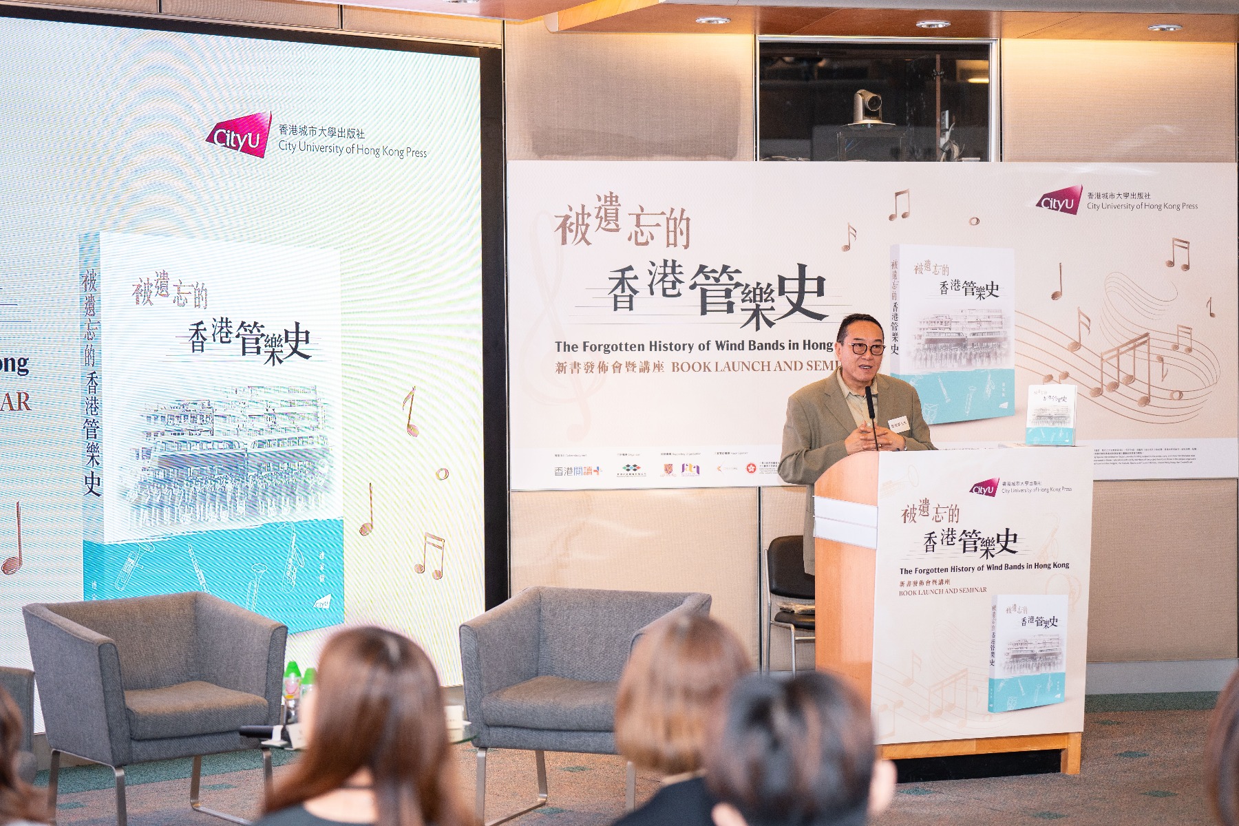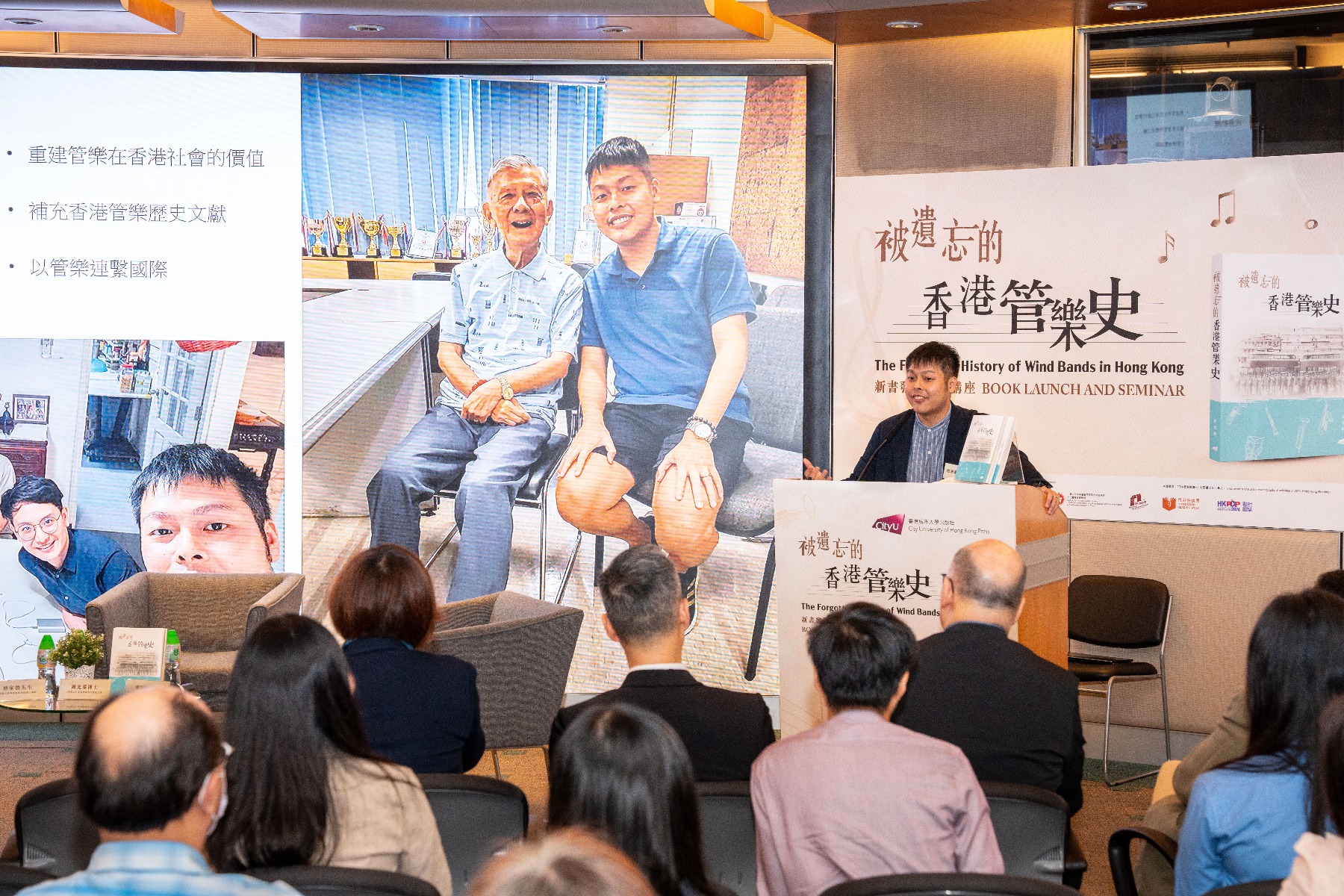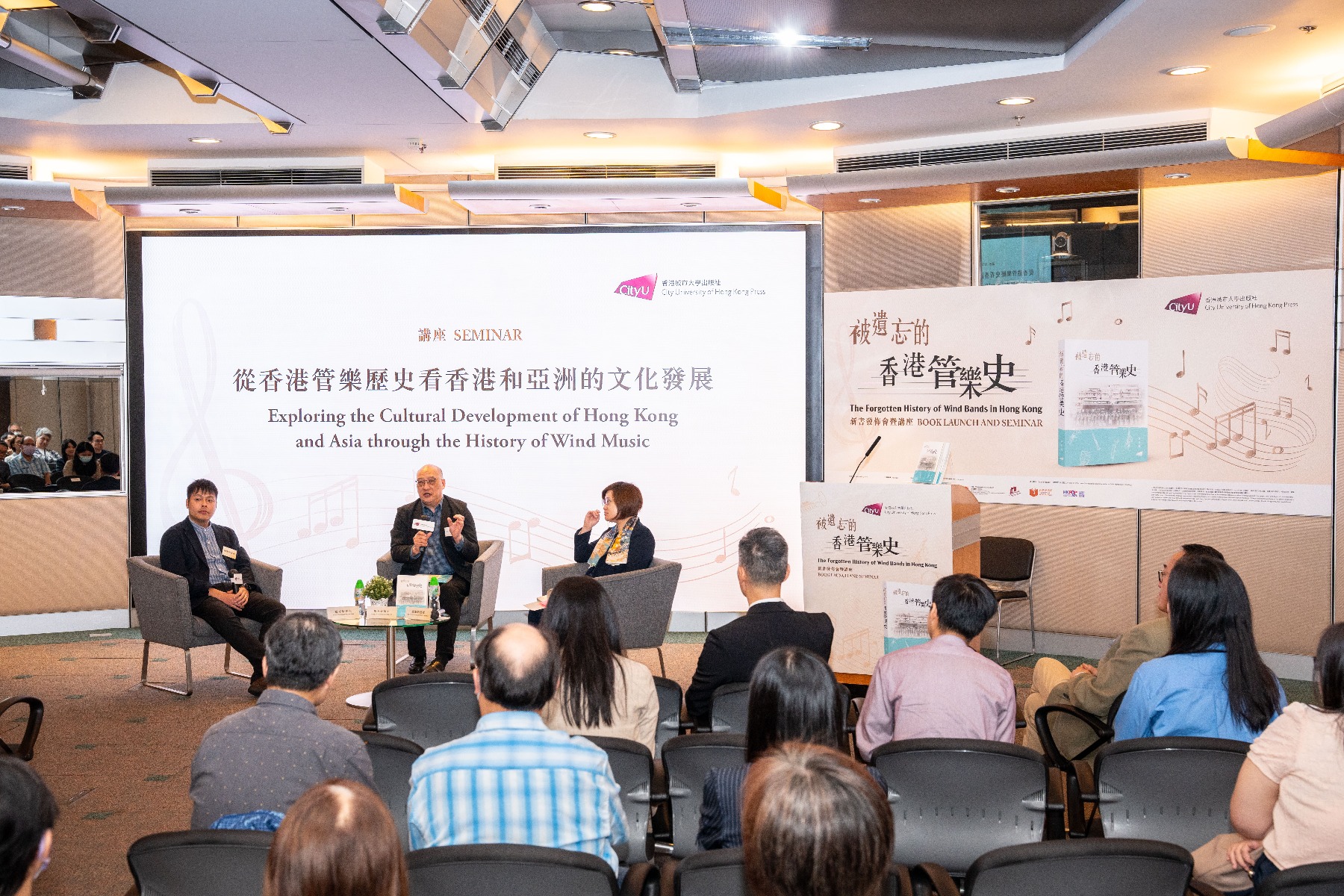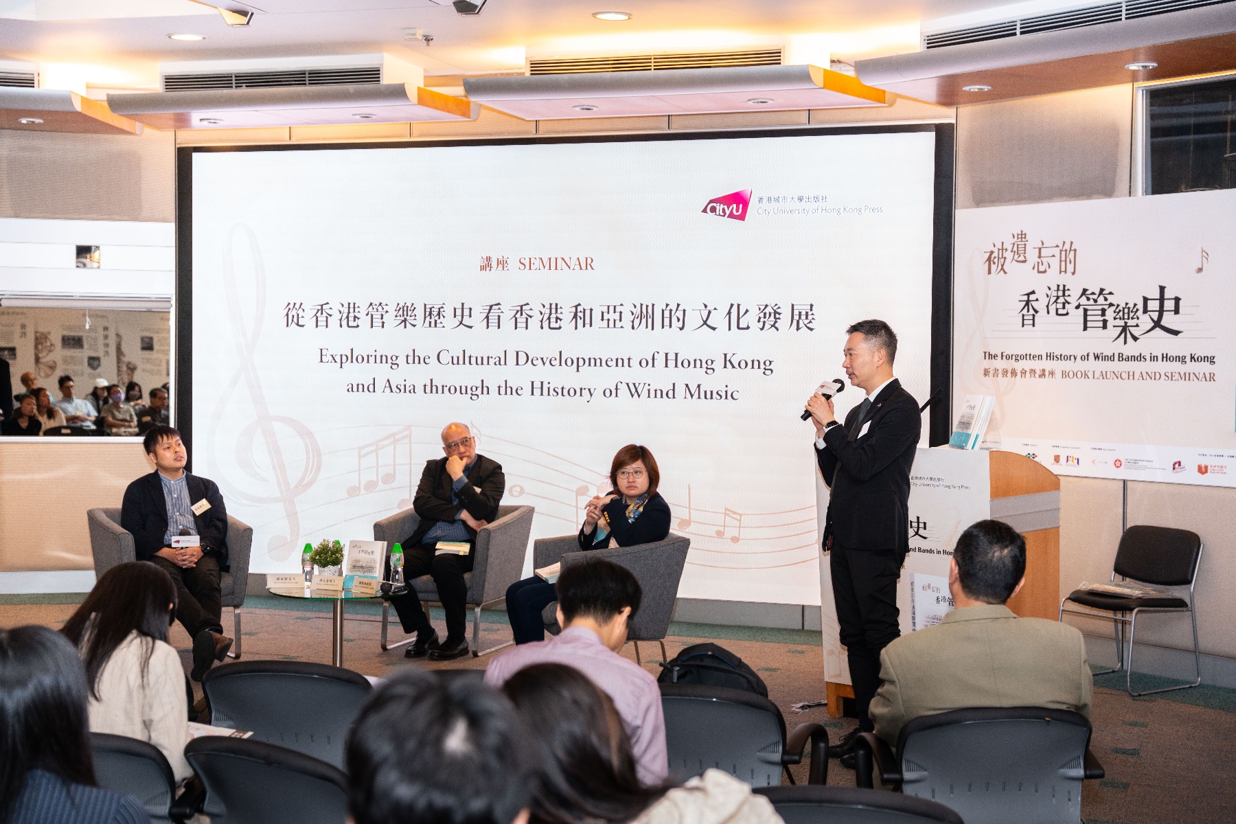 On 3 May 2024, City University of Hong Kong Press held a book launch and seminar for our newly released title The Forgotten History of Wind Bands in Hong Kong in the Connie Fan Multi-media Conference Room (MMR). This event was co-organized with the Hong Kong Publishing Federation Limited; supported by the Master of Arts in Cultural Management program, The Chinese University of Hong Kong; sponsored by Create Hong Kong as well as the Culture, Sports and Tourism Bureau, Government of the HKSAR. It was one of the reading cultural activities included in 2024 Hong Kong Reading+.