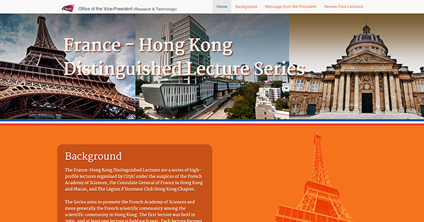 The France-Hong Kong Distinguished Lectures are a series of high-profile lectures organised by CityU under the auspices of the French Academy of Sciences, the Consulate General of France in Hong Kong and Macau, and The Légion d’Honneur Club Hong Kong Chapter.