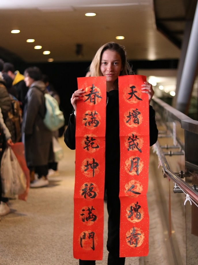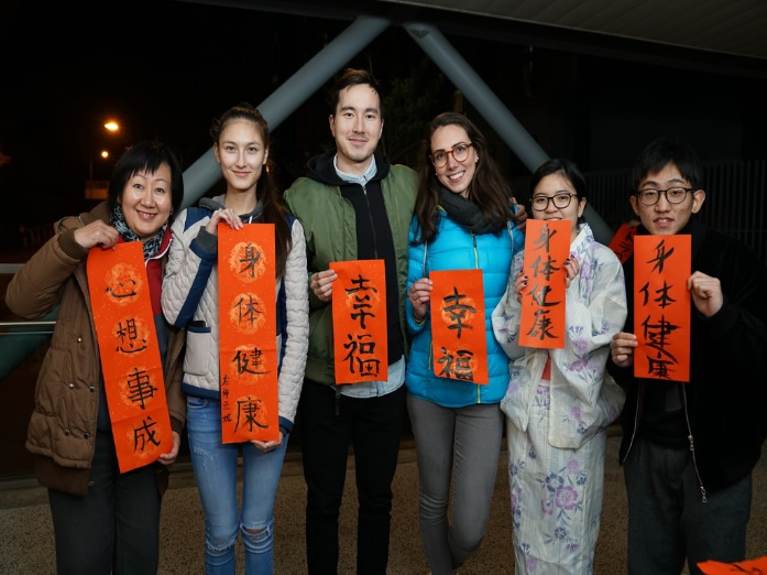 Writing "Spring Festival Couplets" is a traditional Chinese custom. To offer student residents a chance to express their new year blessings in Chinese, Korean, Japanese and even Hieroglyph, the SRO organized the “Couplets Writing for the Year of Dog” jointly with Library and Calligraphantasy Society at the footbridge leading to Student Residence on 2 Feb 2018. Despite the chilling cold weather, the joyful atmosphere heated over 300 local and non-local residents participating in the event, expressing and giving one another their best wishes of the Lunar New Year of Dog on the red couplets.