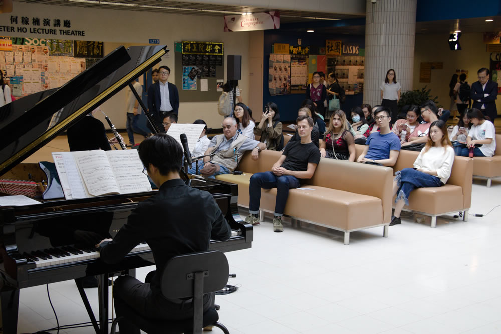 Ms. Tinny CHEUNG and Mr. Stephen HUNG were young and talented musicians who graduated from the Royal Academy of Music in London. Their piano and oboe duo performance attracted a full house of the audience during lunchtime. The highlight of the concert was a 25-minute non-stop piano solo performance by Stephen. The audience were intoxicated by his music!