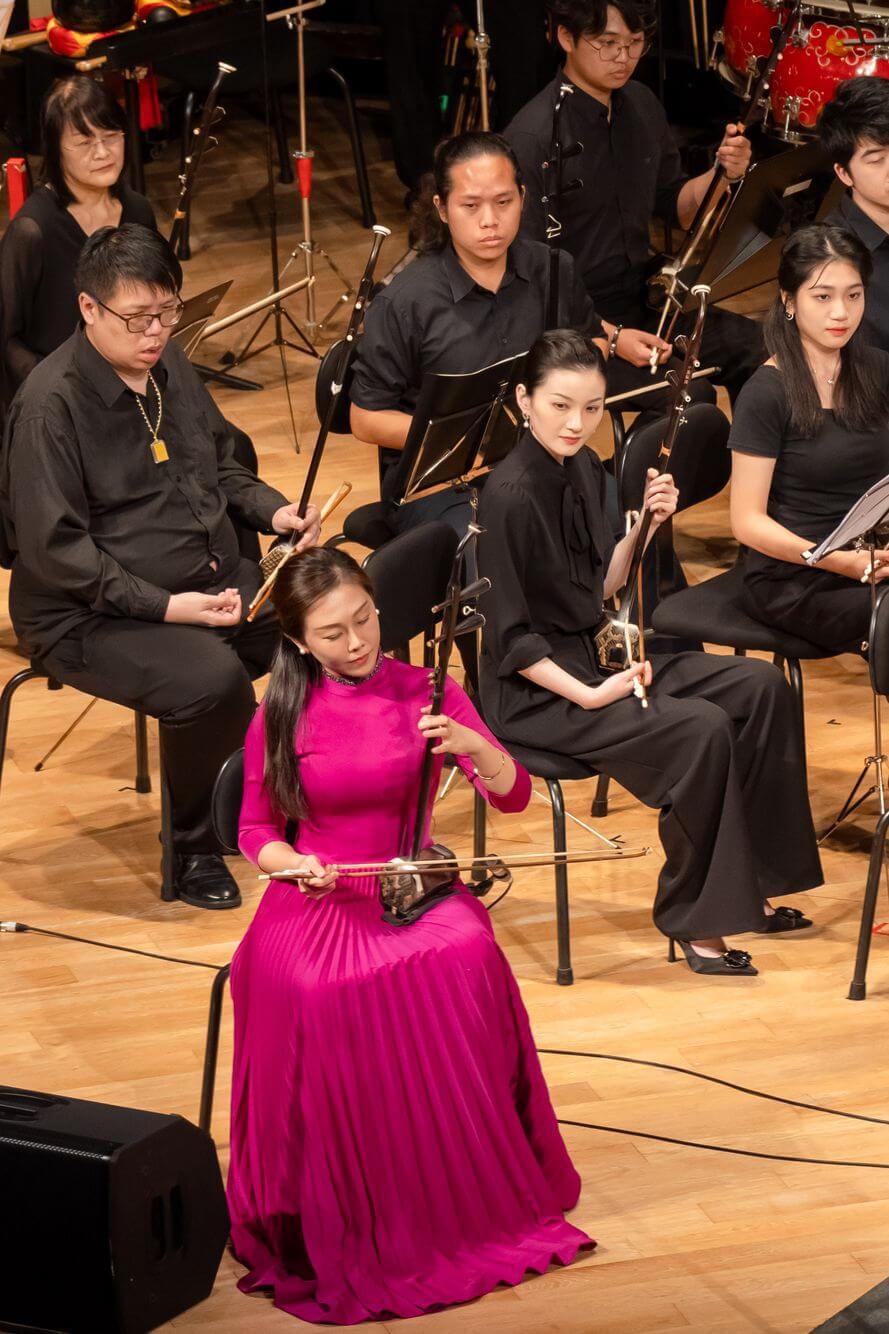 The concert began with the song "Celebration Overture", two groups then took turns playing a variety of Chinese instruments, including Erhu, Pipa, Guzheng, Dizi, Percussion, etc., to perform a series of Chinese music pieces featuring the Silk Road, including "The Flying Apsaras", "Snow Lotus" and "Walker" etc.