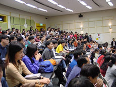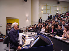 Hundreds of students packed CityU's Lecture Theatre 6 to attend a seminar on education by guest speaker Professor Steven N S Cheung, formerly of the University of Hong Kong, on 26 March.