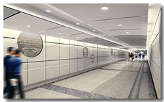 走進連接又一城與城大校園的行人隧道,你會發覺覆蓋在牆上的不再是乏味的瓷磚水泥,而是富時代感的金屬嵌板;裝飾在嵌板上的是學者名人的雋語匾牌。新裝上的天花燈光,將原本顯得幽暗陰沉的地下通道,照得通明亮麗。步入教學樓的大門入口,你會發現,校園內的改動更大,簡直是脫胎換骨。原來的圖書館入口、恆生銀行和書店都已搬遷。四樓平臺的活動空間多了,比以往顯得更寬敞、更具時代氣息……。這些都是2003年底,當校園環境改善計劃的大部分裝修工程完成後,城大校園將會出現的新貌。