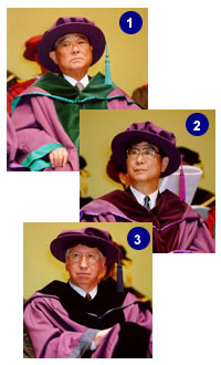 Dr William Mong Man-wai (1), Chairman and Senior Managing Director of the Shun Hing Group and dedicated community leader, was conferred with the honorary degree of Doctor of Social Science. Professor Qu Geping (2), a seminal figure in the development of