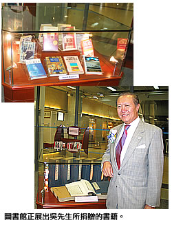 吳先生自2000年起先後贈(zèng)予邵逸夫圖書(shū)館逾8,000冊(cè)圖書(shū),還有雜誌及光盤(pán),種類繁多,涵蓋法律、中國(guó)哲理、藝術(shù)及東西方文學(xué),以及