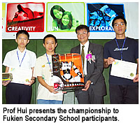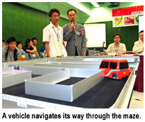 "We want our participants to learn mechatronic engineering through fun and games," said MEEM Associate Professor Dr Peter Tse, one of the workshop instructors. During the workshop, participants designed and assembled the mechanical parts of the vehicles with the application of the latest computer-aided design (CAD) technology and advanced Rapid Prototyping equipment. The participants from eight secondary schools were divided into teams. Combining the mechanical parts and the electronic subassemblies provided, each team constructed an entire vehicle. Finally, they learned how to program the controller and connect the sensors in order to guide the vehicles to find their way out of a complex maze. (Click here for a video clip of the competition.)