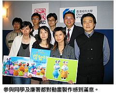 「有機會參與『神探智多多』的製作,確是十分有意義和具挑戰性。我們把所學到的說故事技巧、立體模型製作、剪接、燈光、配音、程式編寫等等融合起來,實踐於製作中,取得了寶貴的創作和管理經驗。」創意媒體學院二年級學生蔡騰翼說。他與其餘六位主修動畫科的同學於去年2月開始,在助理教授李少偉導師的引薦和指導下,開始籌備和策劃把廉政公署的經典卡通兔角色「智多多」由平面化身為煥然一新的立體影像,並締造了一些生動的新角色如「鼠 大飛」,再加上生活化的故事內容,構思出一套共10集,每集片長1分30秒,包括10個不同場景和26個角色的大型立體動畫片集。「整個製作過程均在創意媒體學院進行,我們幾乎把所有假期和空餘時間都投入製作中,並要克服種種限制,幸而我們獲給予很大自由度和創作空間去發揮,更高興製作效果令人滿意,並且得到廉署方面的讚賞。」蔡騰翼說。 「我十分欣賞城大同學的責任感,他們在應付繁忙的功課之餘,能夠依期完成『神探智多多』的製作,實在投入了很多努力和時間。此外,他們的技術好,創意高,在片集中作出了不少新嘗試,我們都感到非常滿意。」廉政公署署理總教育及宣傳主任彭健夫先生說。城大向來鼓勵師生積極參與社會服務活動。「事實上,我們創意媒體學院的學生亦曾為多個公共及商業