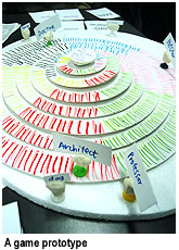 Constructing a physical prototype is an important part of the creative process, according to Fullerton and Swain. “The physical prototype is of an electronic game, but we do them in what we called a pre-electronic form, so that the system is very malleable to change. We find that if students hammer out a prototype using technology they become quite attached to the way that technology is coded, and they don’t want to change it even if the play expressed isn’t all that it could be,” Fullerton says. “Because we get them to write on paper, no one becomes overly defensive or attached. We do this in our courses in the US as well, and we’ve found it’s a really effective way of breaking through this initial creative barrier that I think not only game design students, but all creative students have.”