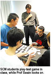 “These SCM students are very good at working in teams, which is important,” Swain observed. “Professionally, we consider it to be a skill you have to practise; for them it just seems natural.” By the end of the course, the students had at least two full, original, well play-tested games that they could take to the next step and build software versions. “What we hope they do is take the concept of intuitive design that they have been creating on paper and see how it can be applied on a computer, with very simple programme,” Fullerton said.